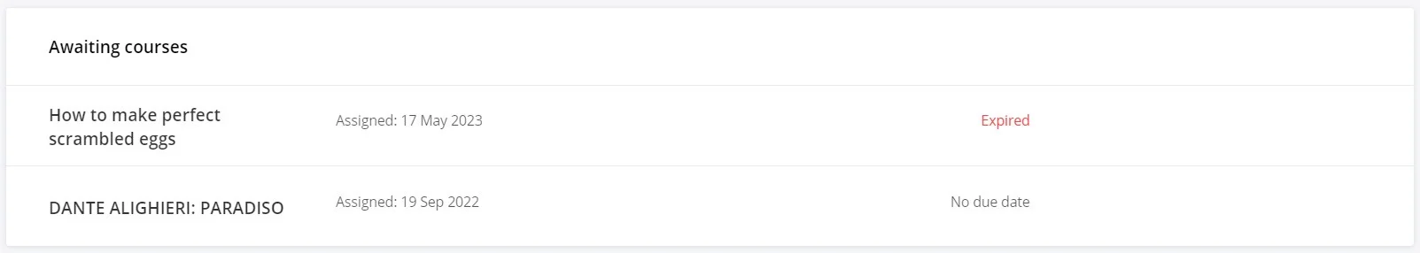 In this section, you will see a list of courses that the user has not completed yet. Additionally, it displays: