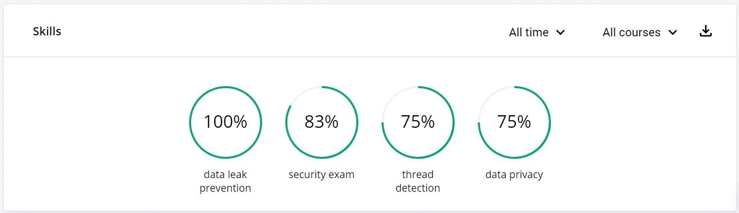 This graph will help you assess how well the user is performing in the assigned courses. It shows the average results of all courses completed by the user.