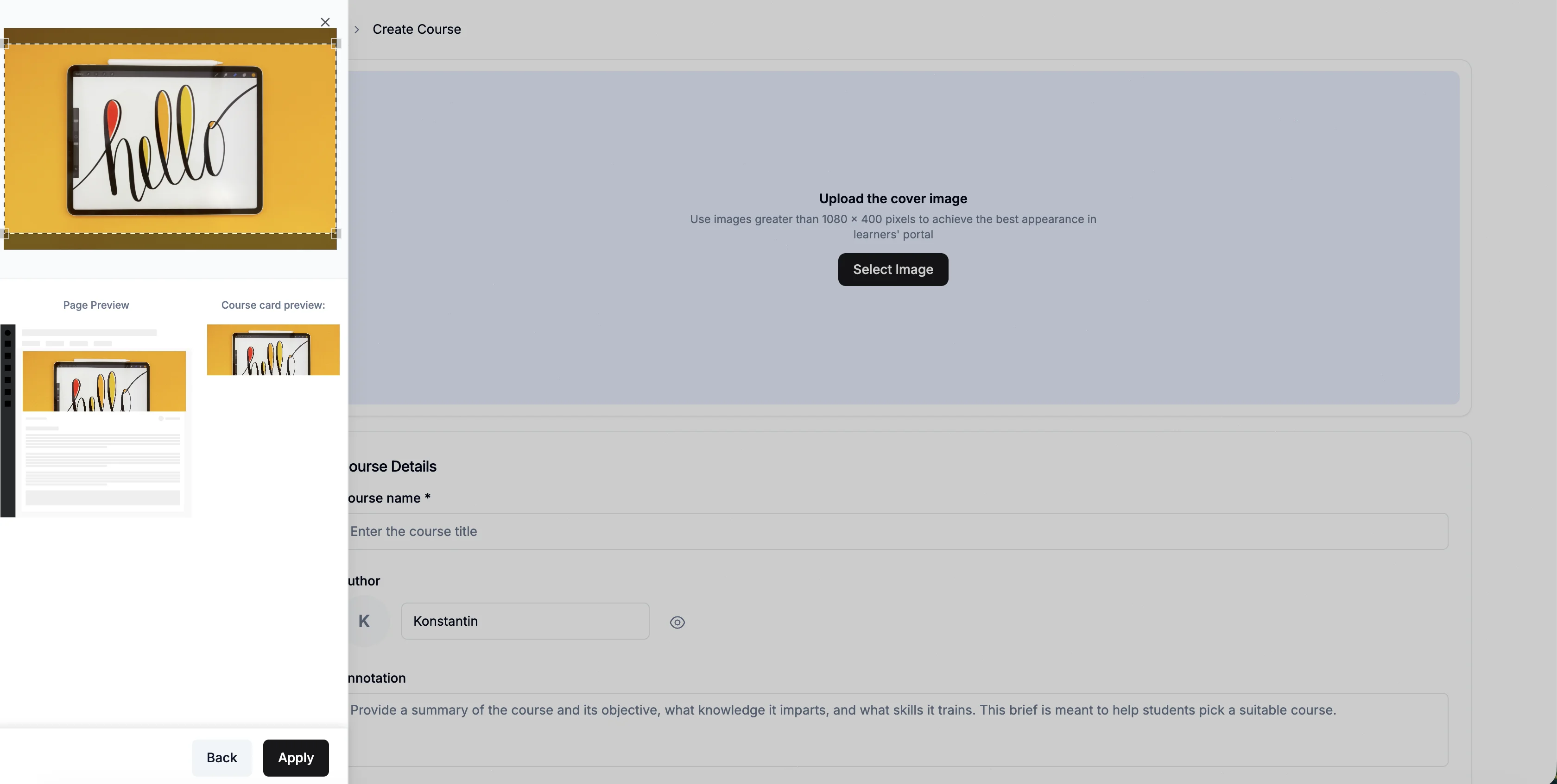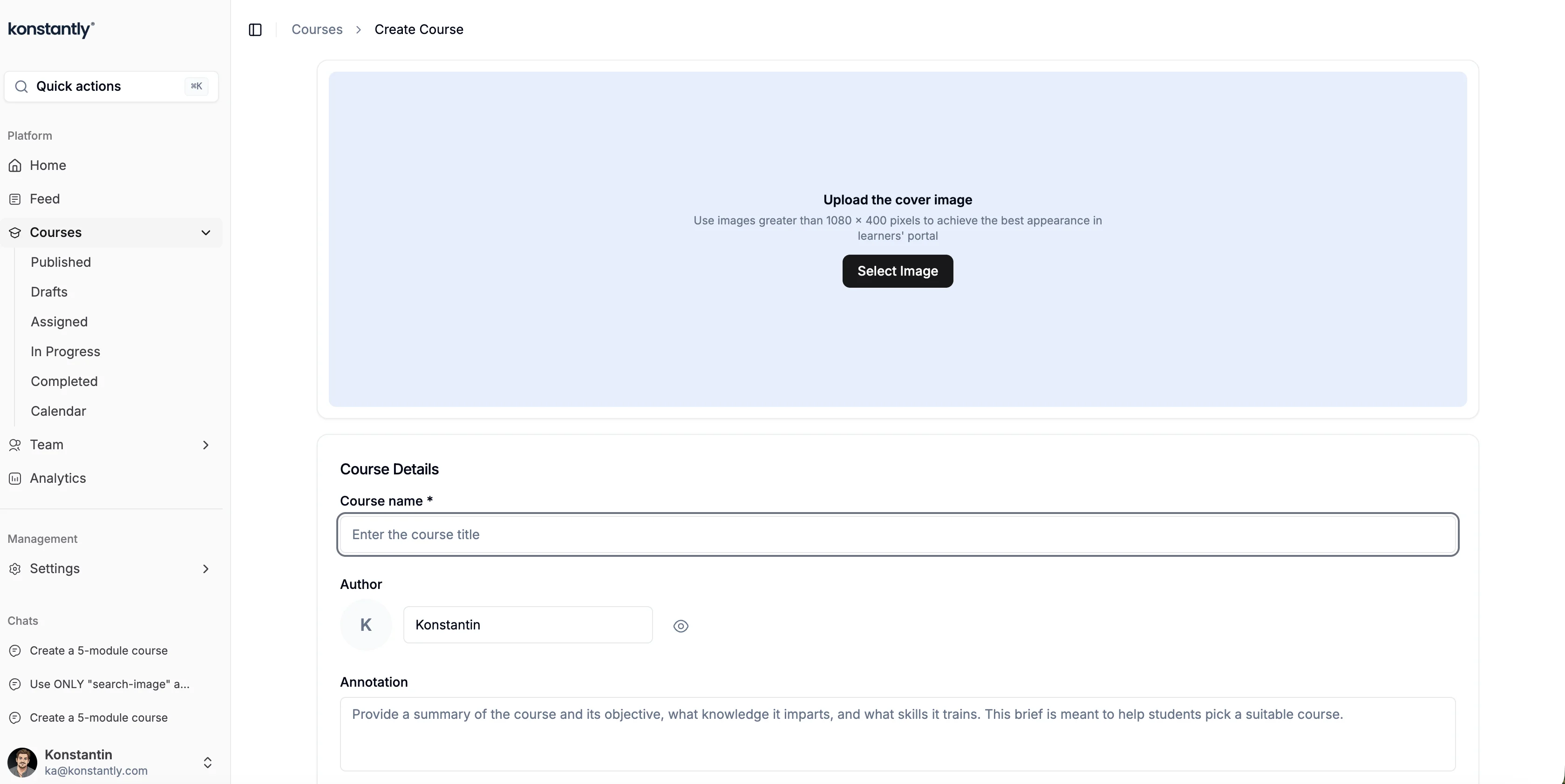 Learn how to create a new course in Konstantly